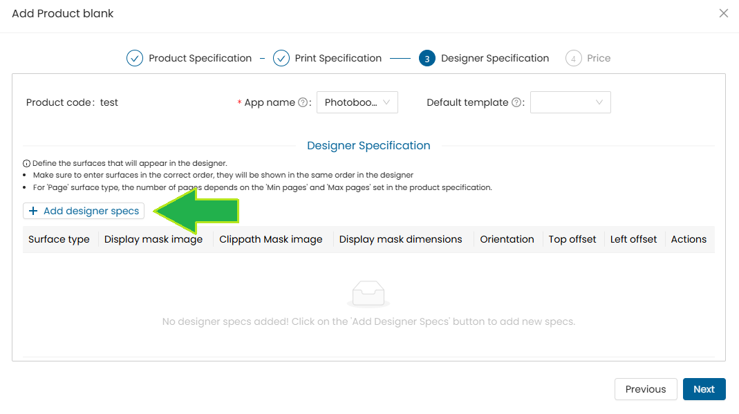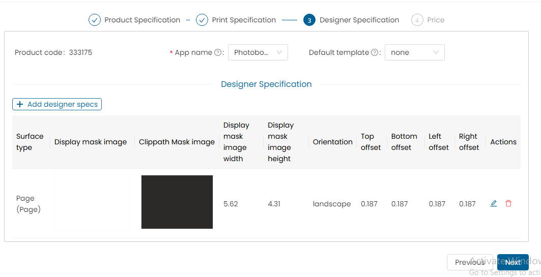 Note: Once a product and its templates are published, the product blank specs cannot be changed.