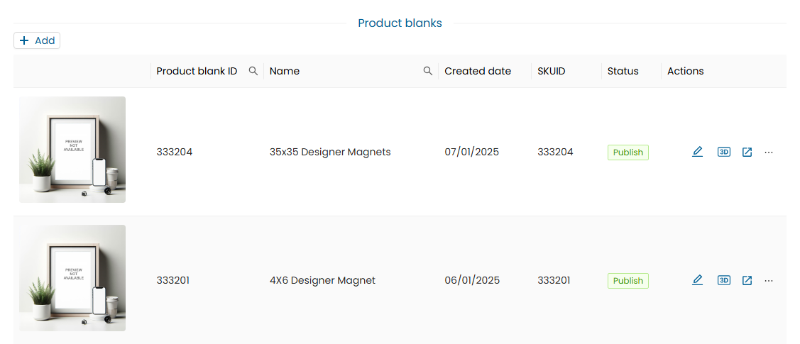 Product Blank A basic product setup used to define how a product works in the design and order system, before adding visuals or final templates.