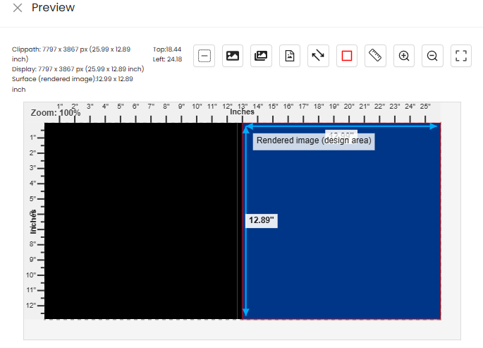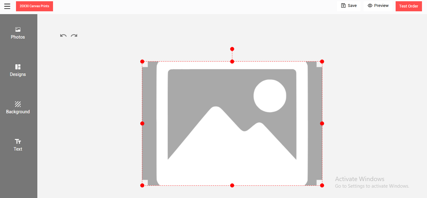 • Image size : Enter image size specs .This image size is the printable image size of the product. Printable output image size. Note : under Image size : as per the image width & height is entered and photo width & height the photo holder will be displayed in the designer.