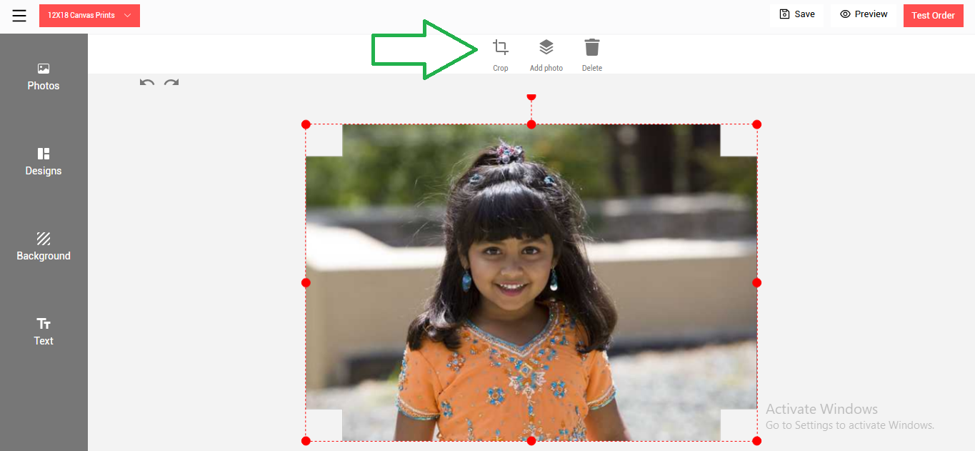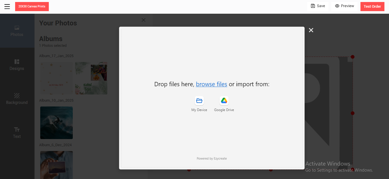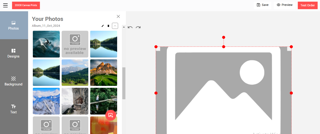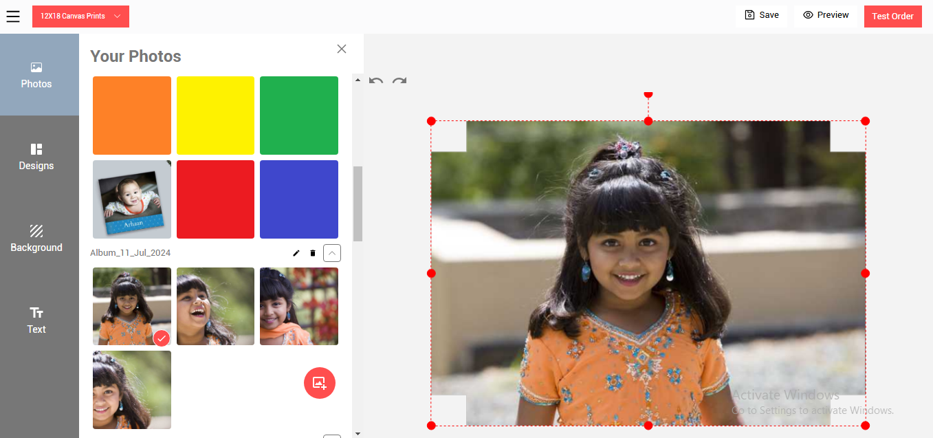 Once the photos are uploaded, click on the photo to add it to the designer.