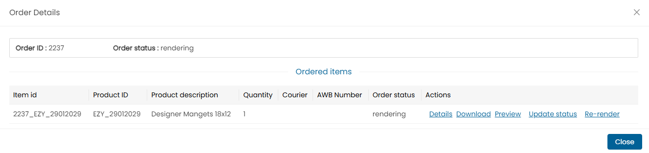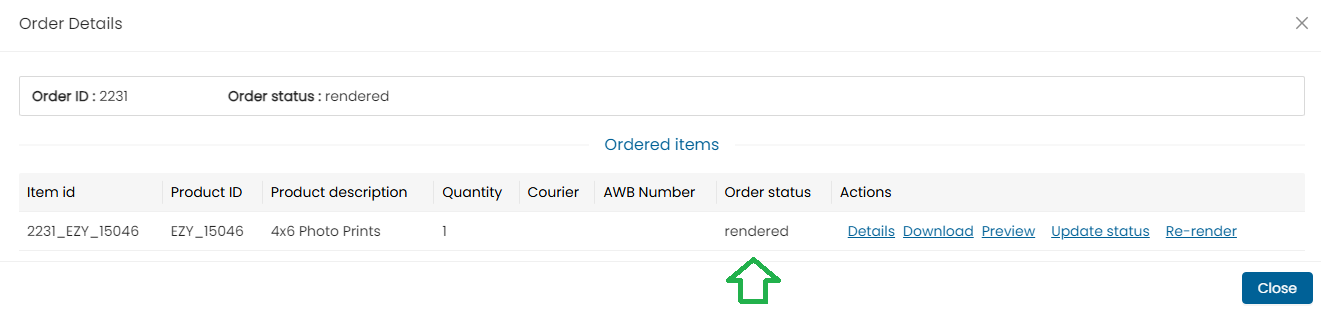 Once the test order is placed the order will be rendered by the renderer application, and it will be available in the order screen