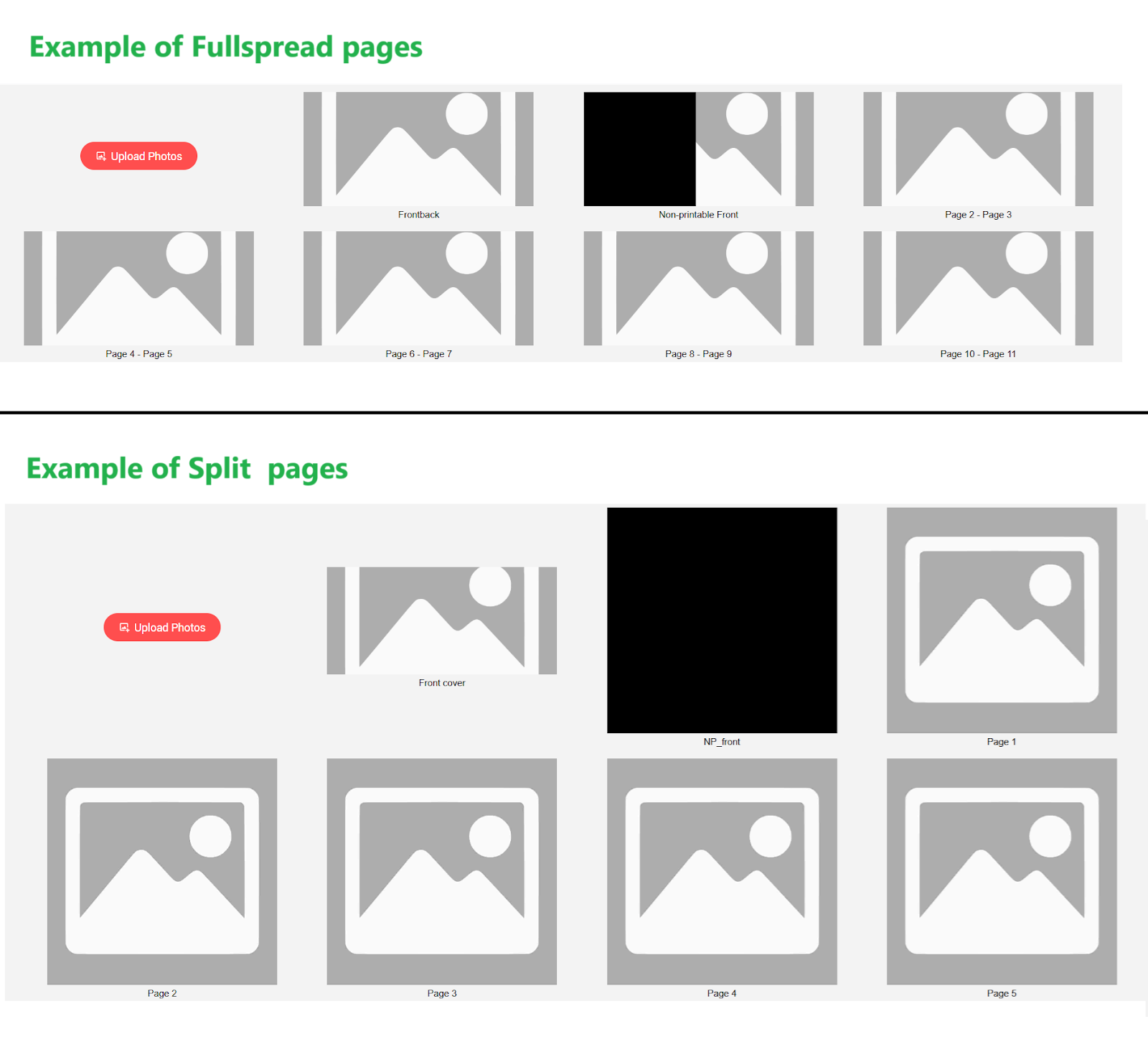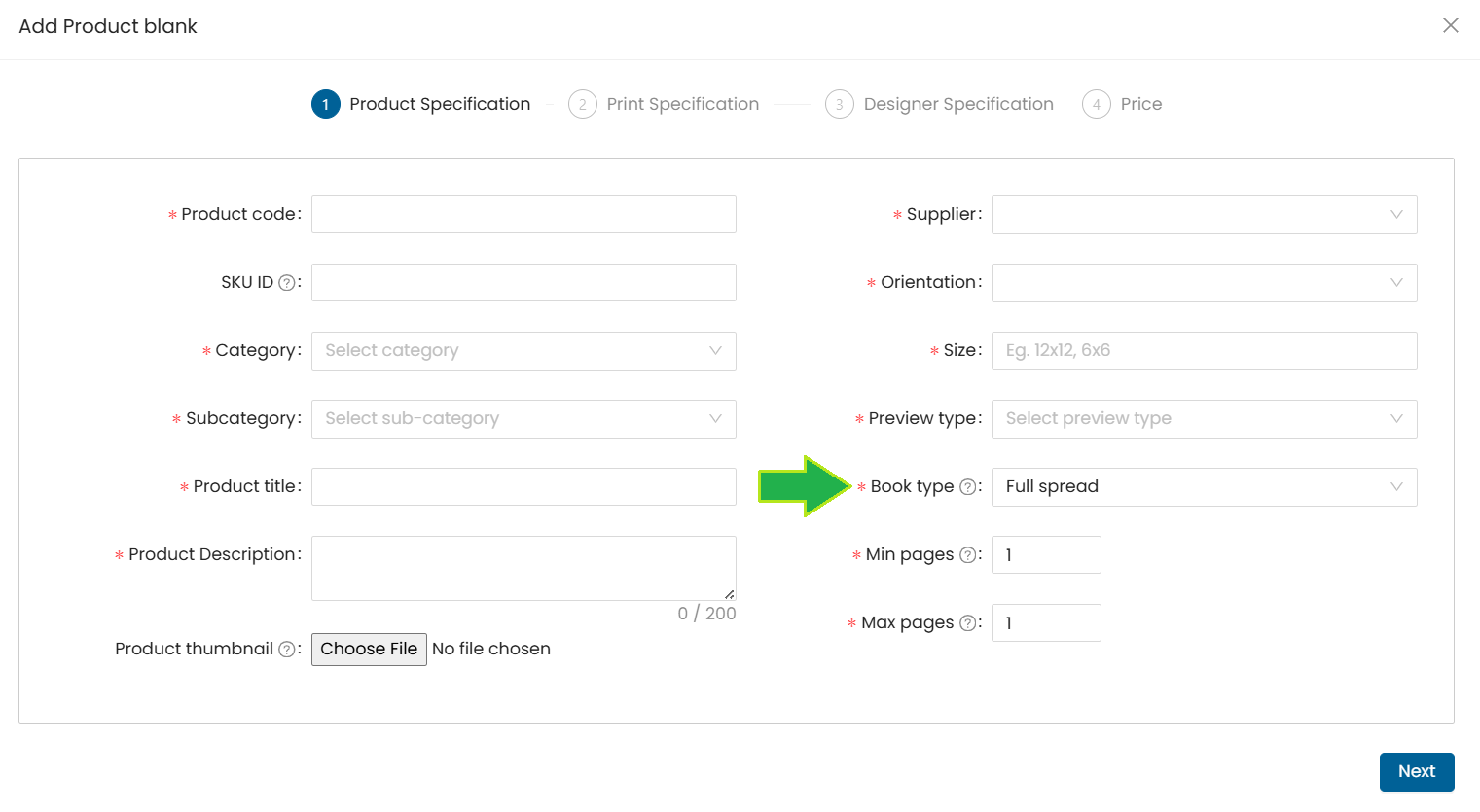 Book type : This option is specific to photobooks only. Where user will have to select the book type for example : Full spread or split.