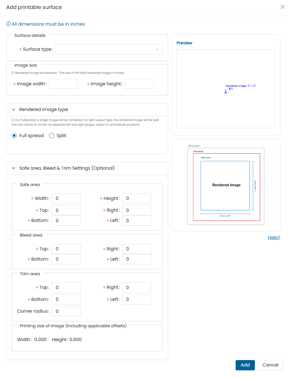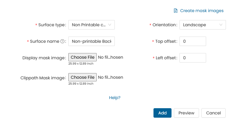 Output type: Select the output type for the product i.e., JPG / PDF Click on the Add printable surfaces button.
