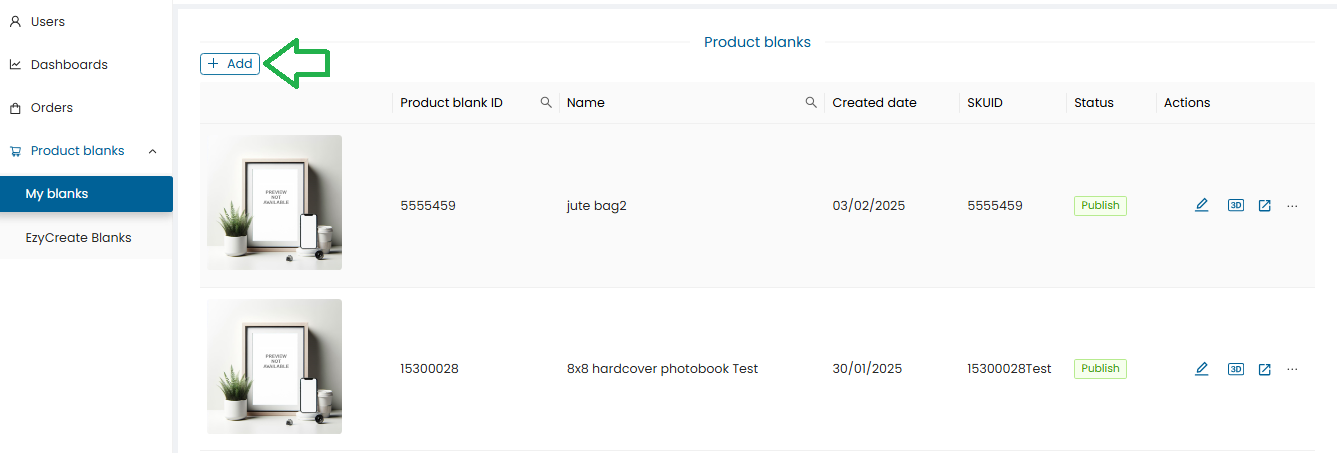 Choose Product Blank (Print yourself or choose a Product Blank)