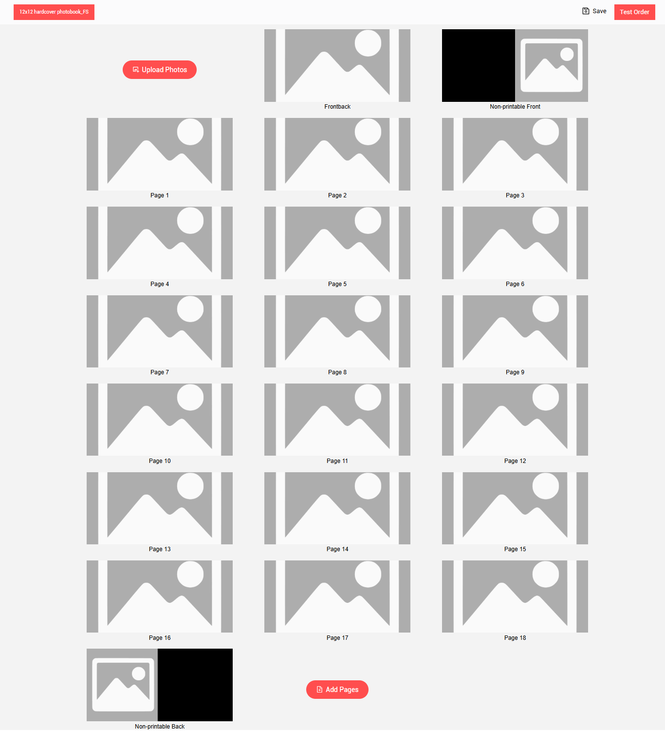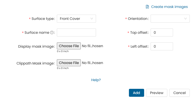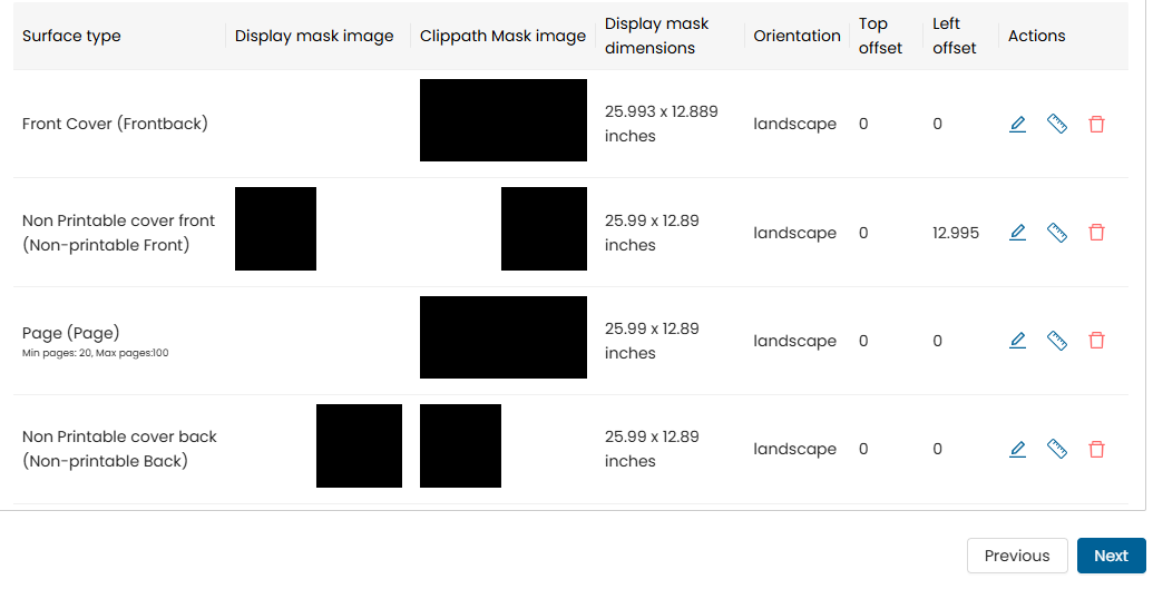 3. In case of photobooks the “Display Mask image” should have the safe area marking, and the cover labels. ie. “Front/back” sides.
