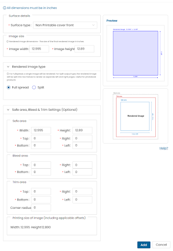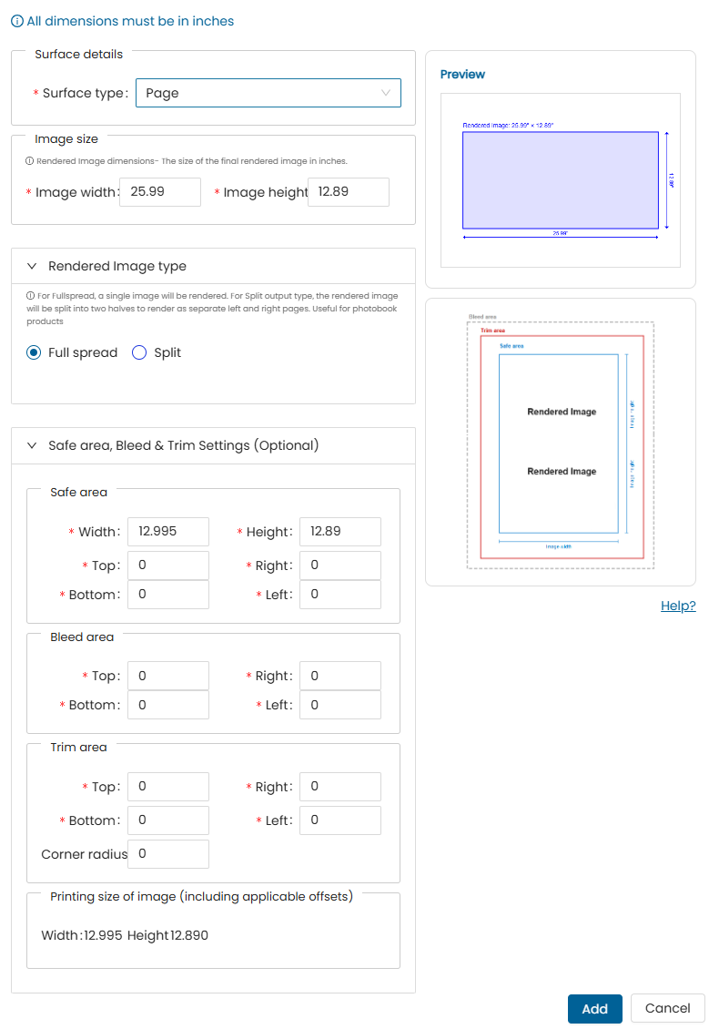 Note: This option is applicable for photobooks only. While configuring a photobook, select the rendered image type as per the book type configured (e.g., Fullspread or Split).