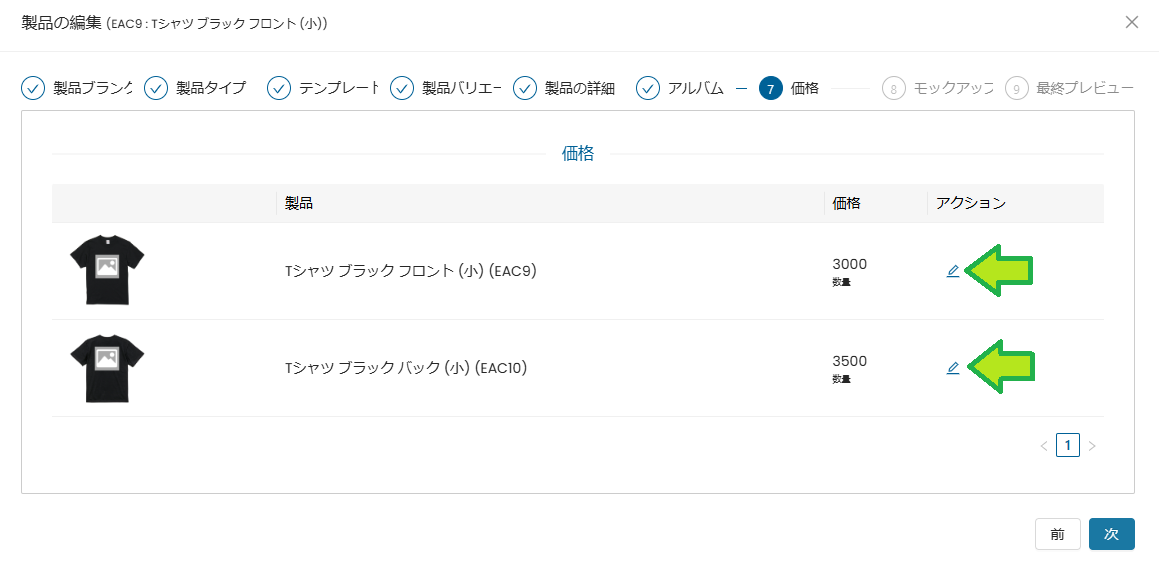 各バリアントの「Edit」アイコンをクリックし、価格を設定