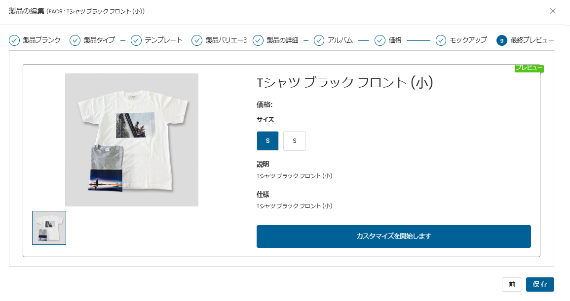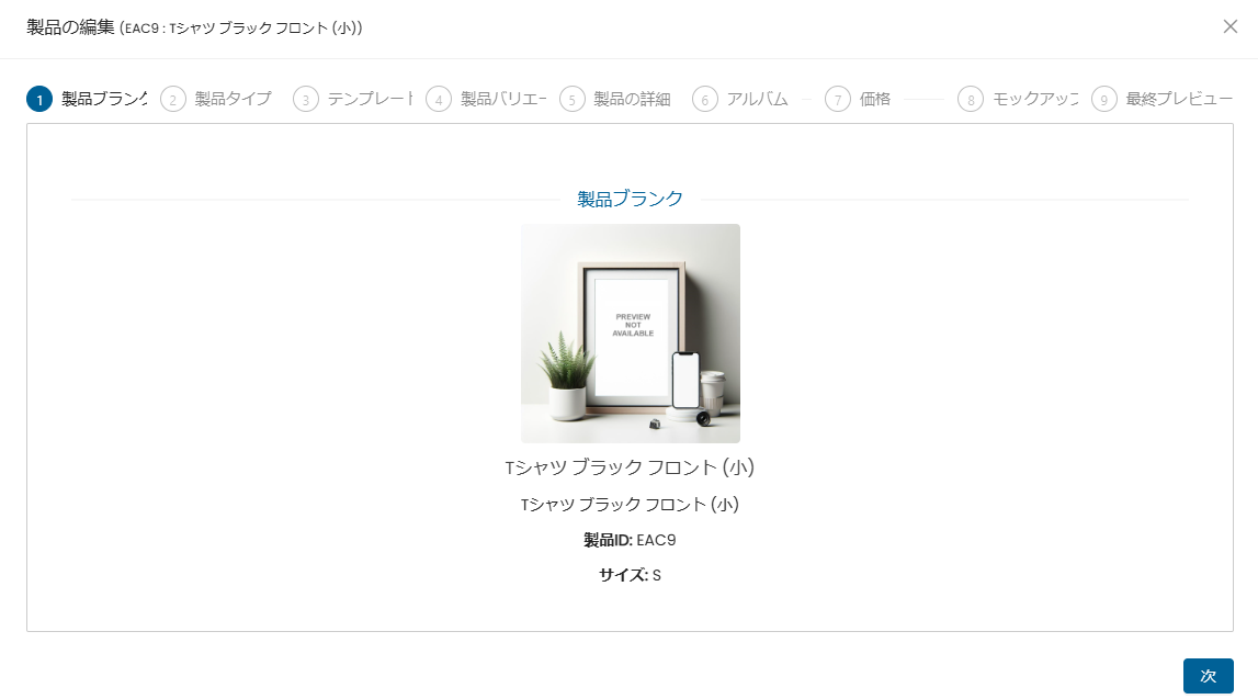 - 少なくとも1つの製品ブランクと、公開済みテンプレートが存在すること