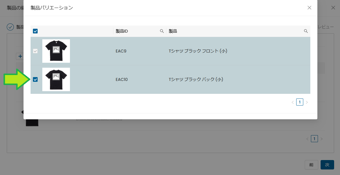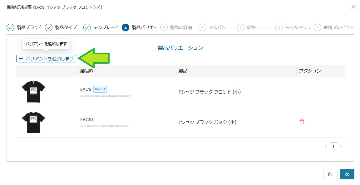 すべてのバリアントがSKUと価格の編集フィールドと共に表示される